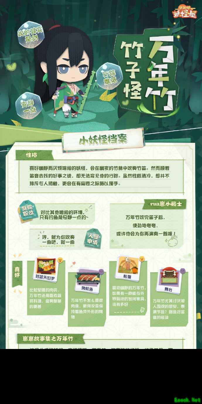 想要和万年竹做朋友,家主可以选择吹奏一首难度极高的曲子,也可以选择细读这份小档案!