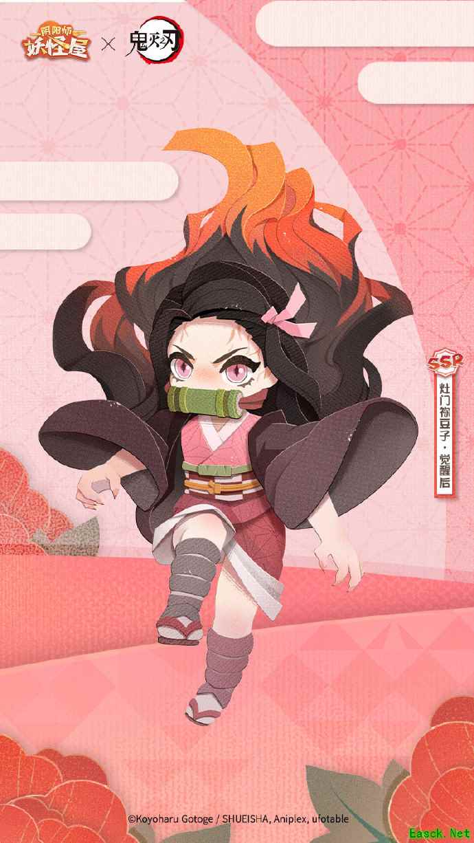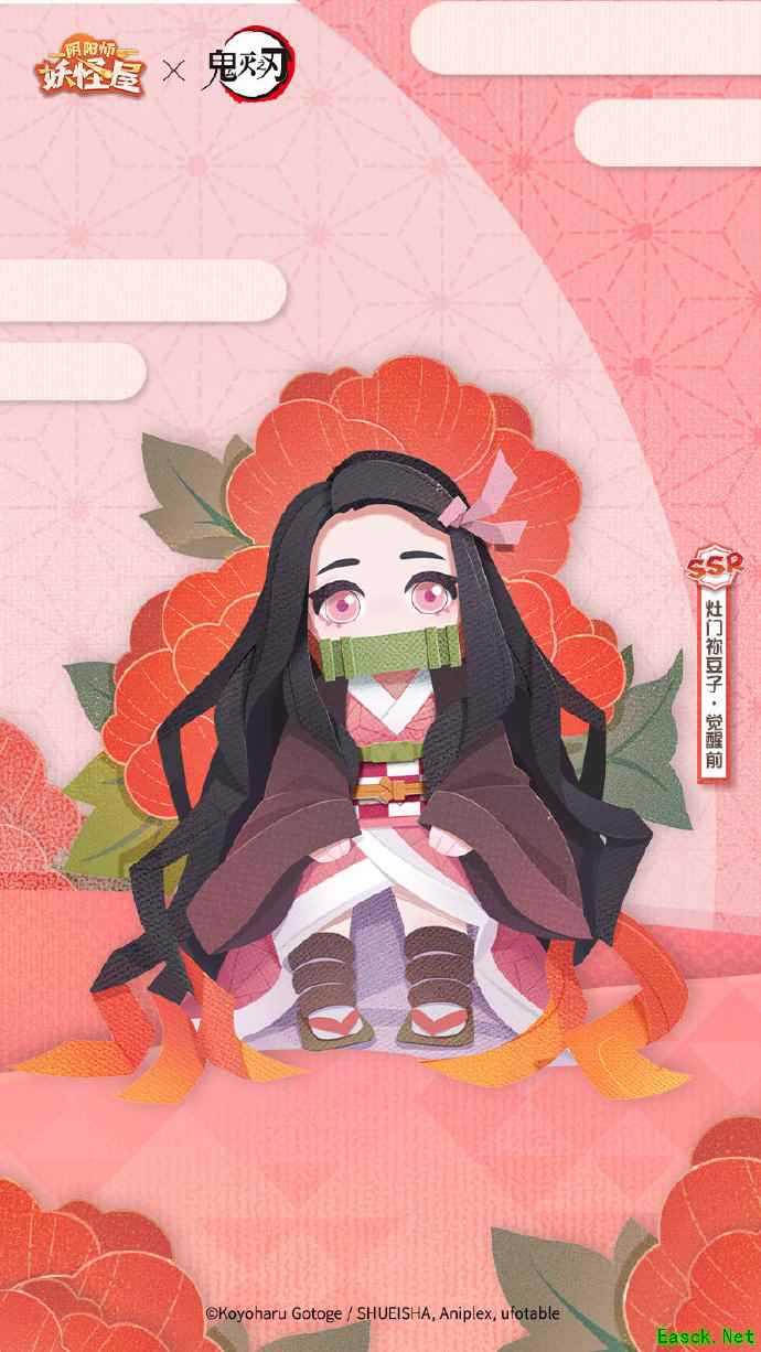 |皮肤获取方式| 『灶门炭治郎·鳞泷云纹』皮肤将于2021年2月7日—2021年2月20日上架皮肤商店,鬼灭之刃联动皮肤需使用专属皮肤券购买。 (展示效果仅供参考,实际效果以游戏内为准) |专属皮肤券获取途径| 活动期间,家主可通过后续活动“灶门兄妹庭前投喂”H5小游戏、商店购买、召唤活动等途径获取。 【联动角色·灶门祢豆子】 「灶门祢豆子」将作为限定SSR降临妖怪屋! 鬼之少女灶门祢豆子,为了压制吃人的本能,嘴上总是咬着一只竹筒。原本是灶门家的长女,灶门炭治郎的妹妹。因遭恶鬼灭门时感染其血液而变成了鬼,但作为人的善良温柔一直都刻在这个小小的身躯里,为家人着想的她,使用血鬼术·爆血也想要保护哥哥~ <灶门祢豆子静态欣赏>