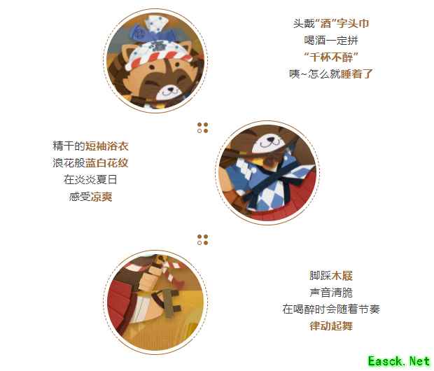 绚烂花火升空 喧闹的夏夜祭典中 不时传来阵阵鼾声~ 咦?那躺在草丛间醉醺醺的身影是… 身穿浴衣的狸猫 抱紧酒坛子酣畅入眠 仲夏之夜还长 不知道梦里的酒是不是更加香醇呢? 【狸猫·酒之夏祭】