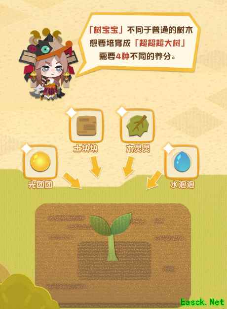 ※当四种养分都吸收充足后,「树宝宝」便会自我突破,成长到下一个阶段,重新开始吸收养分。当「树宝宝」长到最后一个阶段,便会成为「超超超大树」!