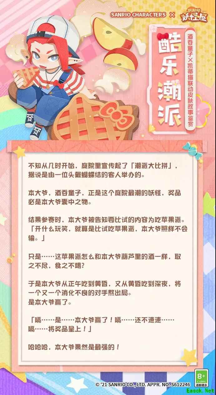神秘客人举办的「潮派大比拼」 引起了酒吞童子的注意 他换上了最潮的衣装前往赛场 可到达比赛现场时 酒吞童子却吃起了苹果派? 【酒吞童子·酷乐潮派】
