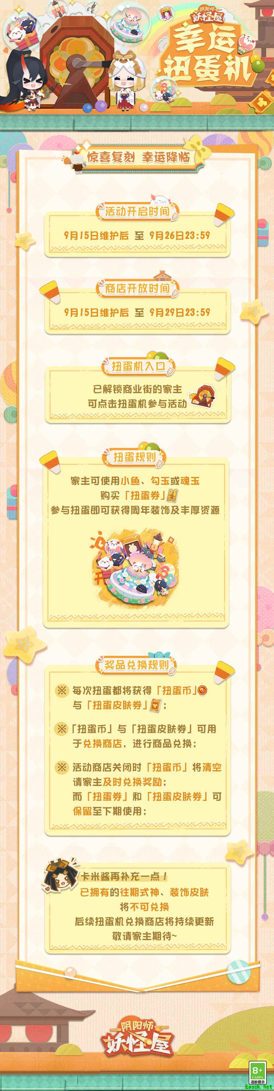 《阴阳师:妖怪屋》福利扭蛋机上线!参与活动获往期装饰!限定玩法!合成大茨球重启!