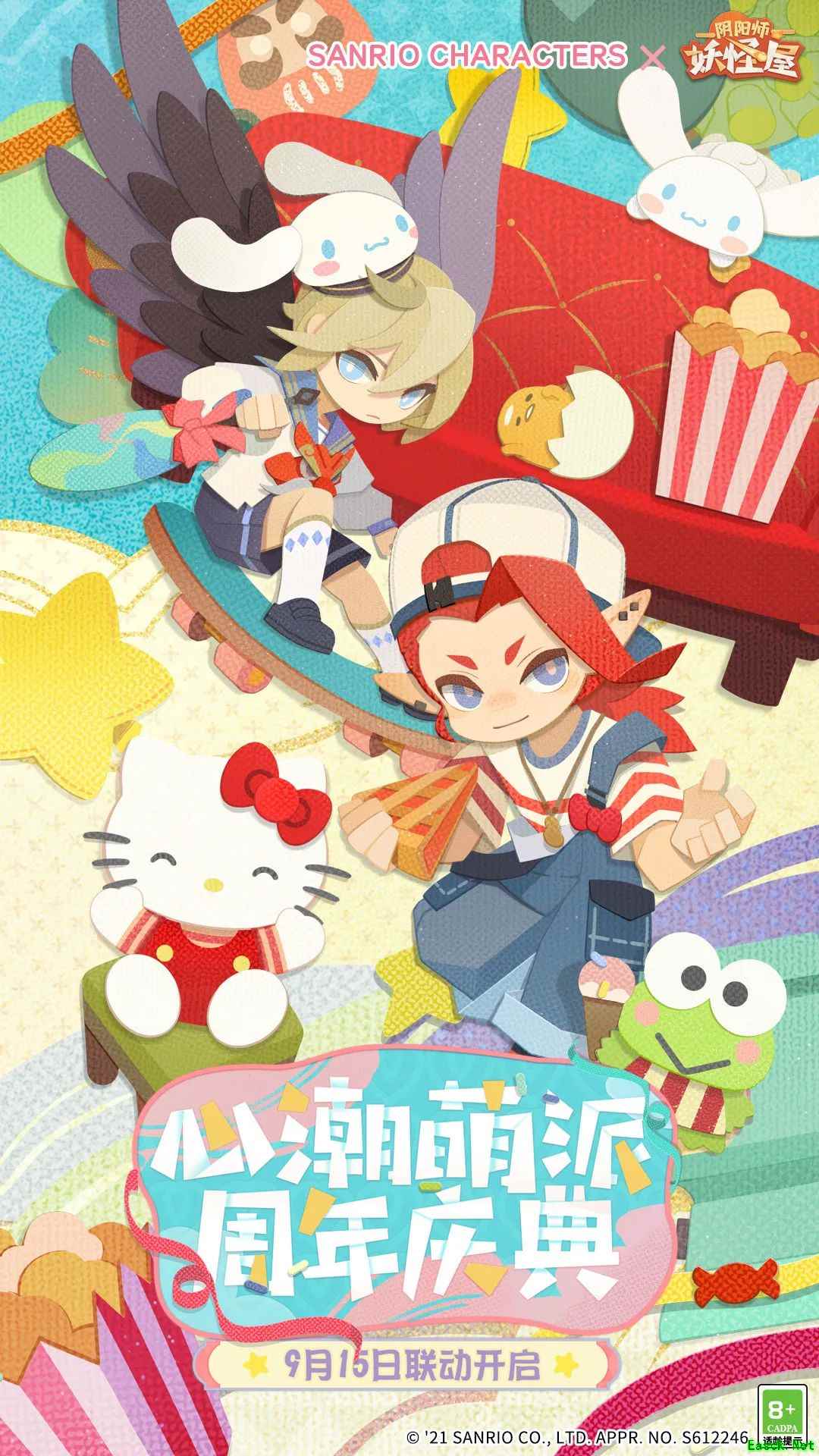 《阴阳师:妖怪屋》×三丽鸥家族来啦! 凯蒂猫、大耳狗、蛋黄哥和大眼蛙 即将造访妖怪屋,9月15日联动开启!