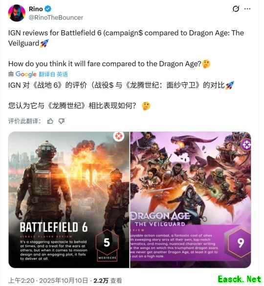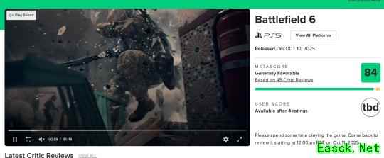 《战地6》单人战役IGN 5分 MTC综合得分84分