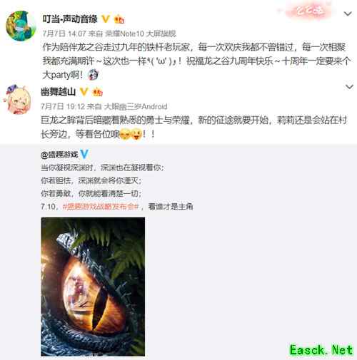 就在近日,盛趣游戏官方官博连续放出了两张全新的海报,微博知名声优叮当和幽舞越山纷纷进行了转发。