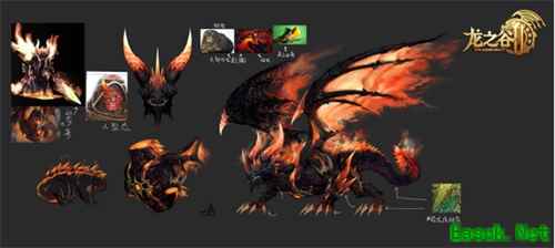 而燚龙也继承了哈根的暴虐本性,在形象构造上,加入了哈根的独有元素。例如燚龙的龙角与哈根的角如出一辙,且形态设计上,烈焰与熔岩进行了完美融合。在燚龙龙皮构思上,也富有巧思。燚龙的龙皮与其他龙截然不同,它的龙皮灵感来自于蜥蜴皮,这更突出了它邪恶的本性。燚龙身上的龙鳞像是由被熔浆侵蚀过后的熔岩组成,粗糙坚硬。它的翅膀上带有熔岩中冒出的火焰,十分具有攻击性,整体设计让它的凶恶暴虐性格展露无疑。