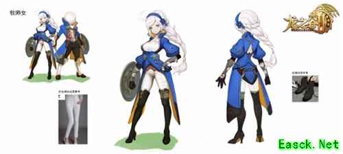 她身着改良后的燕尾长袍,手持圆盾,白色的紧身裤搭配长筒骑士靴,仿若欧洲中世纪的高贵骑士,与男牧师形象关联的同时,又增添了辨识度。飘逸的白色麻花长辫让人物略带小清新的感觉。在以后的战斗之旅中,女牧师将担任“奶妈”这一重任,与队友一起冲锋陷阵,相信她出色的治疗术在战场上一定能为队友治疗一切伤害,冒险家们被牧师小姐姐治愈的心愿终于达成。
