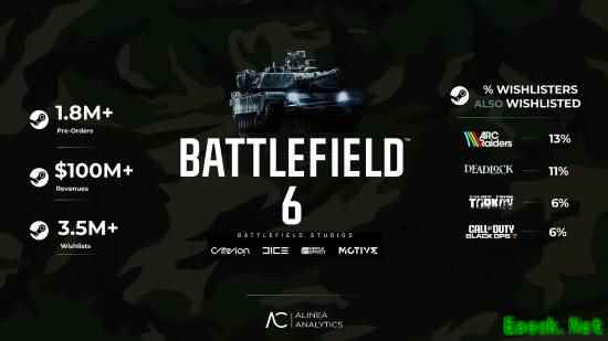 《战地6》登顶Steam热销榜!曝预售收入超1亿美元