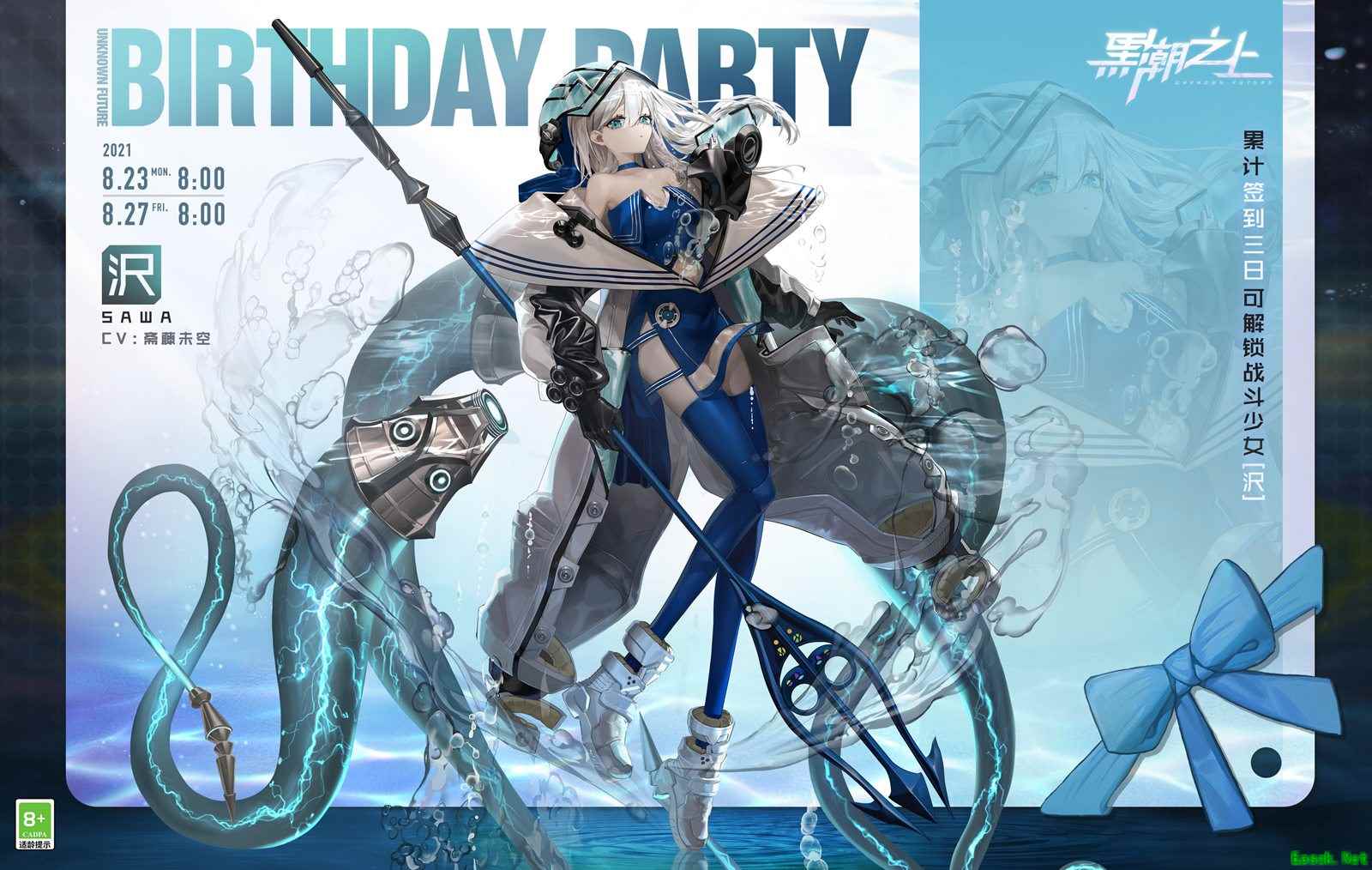 深海命运涌流,处暑新凉渐起,盛夏之末再迎清爽福利!8月23日至8月27日,《黑潮之上》人气少女「沢」限时开启生日派对!即日起,准时上线签到3日,即可免费带走触手少女,掀起深海狂潮!命运的封印已经解开,全新的未来正在涌来……