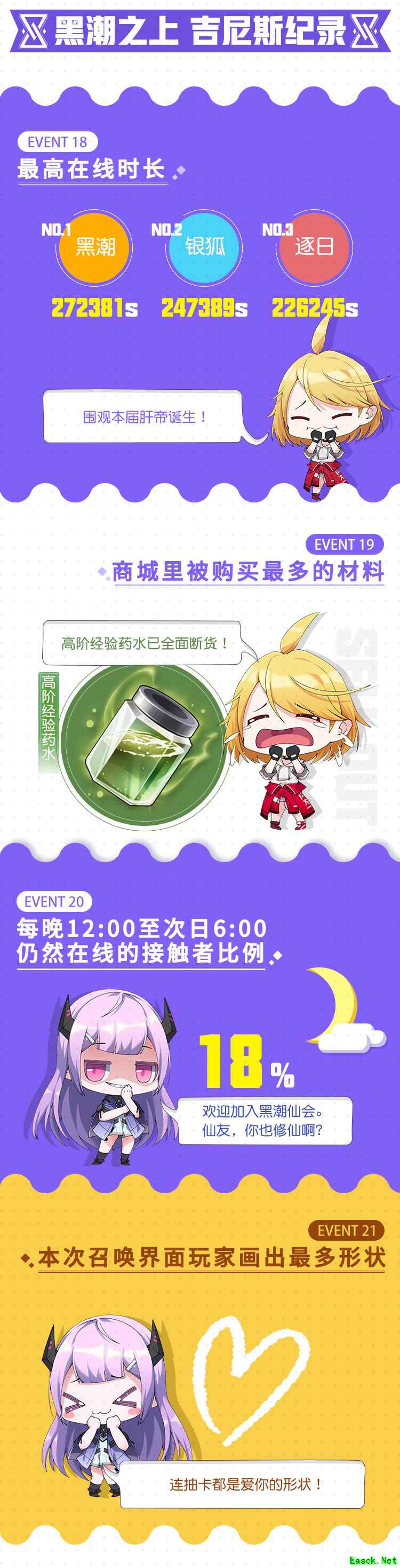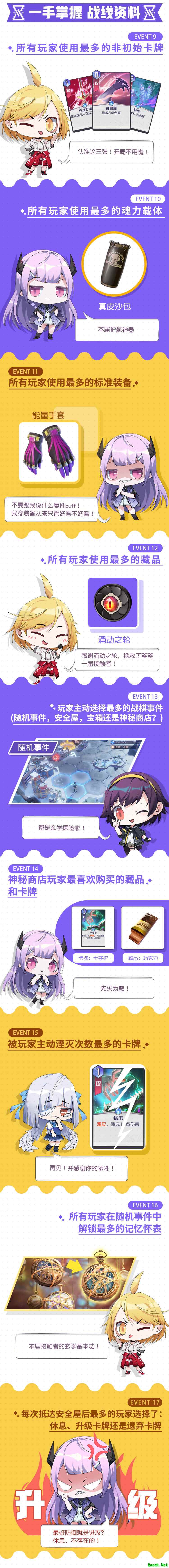战况资料起底, “你,就是身披功勋之人” 经历了数以万计的战斗,接触者们总结下了一系列口耳相传的作战经验。比如“最强三板斧”:乱流打击,跃击,撕裂拳;又或是“想要不挨刀,魂力载体就选真皮沙包”。在标准装备的选择上,大家都很欣赏集华丽与力量于一体的能量手套。关于藏品,可能是因为艾尔莎的高频出镜,与之配对的涌动之轮就成了人气最高的选择。 时间蜗牛是界限测试中接触者们最熟悉的boss——击败玩家次数最多的它,是当之无愧的新手噩梦。主角艾尔莎凭借在剧情中首先登场的优势,赢得了界限测试中玩家最多次数的战斗使用记录,也许是为了安抚艾尔莎的疲惫,回到家中,艾尔莎也是受接触者们触动最多次的角色。就连在伙伴的照顾和培养方面,作为初始主角登场的艾尔莎也不负众望地得到了最多关注,无愧于她此次对抗黑潮时立下的汗马功劳。 在战斗中,各位接触者也表现出对未知事件的好奇和极强的挑战心,因为在四大随机事件——安全屋、宝箱、神秘商店、随机事件之中,接触者们最常选择的是随机事件。贪恋安稳,仿佛不是本届接触者的性格。 至于偶尔进入神秘商店的接触者,他们最常选择卡牌“十字护”以及藏品“巧克力”,用来提升自己的战力。而进入安全屋的接触者,几乎都放弃了回复生命值,选择了升级卡牌。防守?不存在的,全灭敌人就是最好的防守! 当然,战斗里难免遇到需要割舍的时刻。在选择湮灭卡牌的时候,猛击是被抛弃次数最多的卡牌。每一次舍弃都是为了最终的成功,这是黑潮之战里无可避免的战术抉择。