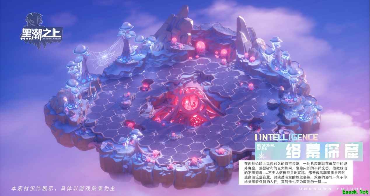 传闻中的都市揭秘 被黑潮吞噬的意外魔窟 情报显示,络幕深窟是面具论坛上风传已久的都市传说,一处只应出现在噩梦中的域外魔窟,充满恐怖及神秘的色彩。重叠密布的巨大蛛网、隐隐闪烁的不祥光芒、微微脉动的不明卵囊......不少人信誓旦旦地宣称,那些被黑潮魔物吞噬的生命便流落在此,灵魂遭滞重的蛛丝裹缠,浓重的邪气一刻不停地折磨着仅剩的人性,直到他也变为魔物的一员...... 新区域生命吞噬 聚居生物不明 从档案来看,和此前公布的地图不同,络幕深窟并没有详细的生物和居住者介绍。 截至目前,《黑潮之上》已曝光末日地平线、蜡尔夫城、瓦特阿尔城、格尔耶村和碧德加城,加上今天的络幕深窟,总共6个区域。而从目前的区域势力渗透来看,碧德加城气候宜人,是人口最多的城市,也必定是归来者隐匿的城市。