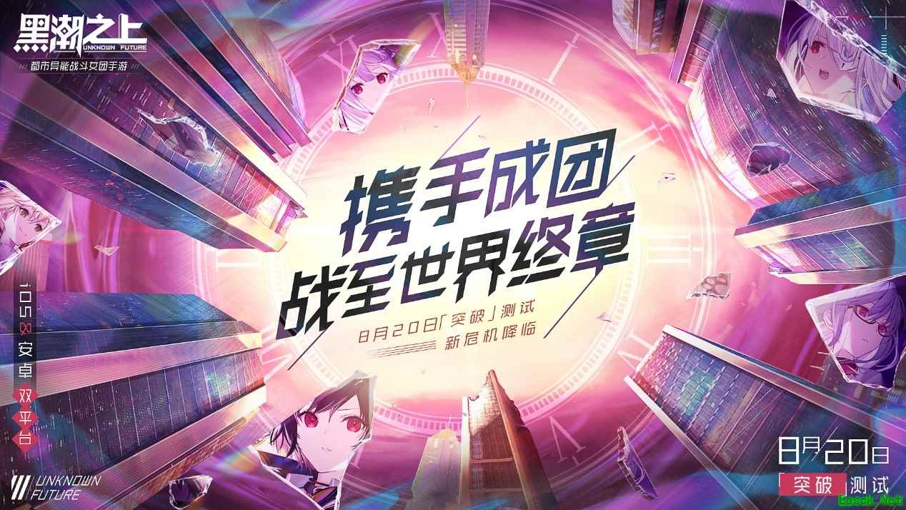 测试时间确认,与你相约 8月20日! 在海报中,包含了一则所有接触者们目前最关心的信息,那就是定档时间。全新版本的「突破测试」即将在8月20日于安卓、iOS开启同步开启,据悉,本次测试除了将支持更多机型外,在体验方面也进行了大规模的优化,玩家将能更顺畅的体验游戏,探秘更多关于“第三次黑潮”的真相! 定档海报发布,战至世界的终章! 从图中可以看出,海报的视角呈仰视,一如少女们平时仰望天空。但此时的天空却与彼时不同:原本湛蓝的天空,此刻却蒙上了一层充满危机感的红,巨大的时钟若隐若现,仿佛时刻提醒着各位少女,距离第三次黑潮来袭的时间。然而,在被如此绝望和凄凉所弥漫的都市上空,却浮现出“携手成团,战至世界终章”这句话,它铿锵有力,如同少女们坚毅的眼神,必胜的决意,和内心不可磨灭的信念感。