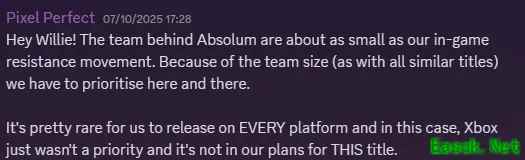 Rogue清版动作游戏《绝对魔权》已于10月9日在PC、PS4、PS5、Switch平台正式发售,本作口碑相当优秀,目前Steam评价为“特别好评”,M站均分86分。但让许多Xbox粉丝失望的是,本作并没有登陆XSX|S或Xbox One平台。 在《绝对魔权》的官方Discord服务器中,社区经理Pixel Perfect谈到了该作缺席Xbox平台的原因:“《绝对魔权》的开发团队规模,差不多和游戏里的反抗军队伍一样小。正因团队规模有限(所有类似体量的游戏项目都是如此),我们不得不在各处做出优先级取舍。对我们而言,同时登陆所有平台的情况本就十分罕见,而在这次的项目里,Xbox平台并未被列为优先选项,它也不在本作的计划范围内。” 外媒windowscentral指出,《绝对魔权》在多个平台上表现不俗,虽然目前Xbox平台并非优先选项,但游戏在其他平台的成功,有可能为开发团队提供必要的资源,进而推动Xbox版本的开发。对于一个小型开发团队而言,这样的发展机遇可能会带来截然不同的结果。 本文由制作发布,未经允许禁止转载。 更多相关资讯请关注:绝对魔权专区 |
