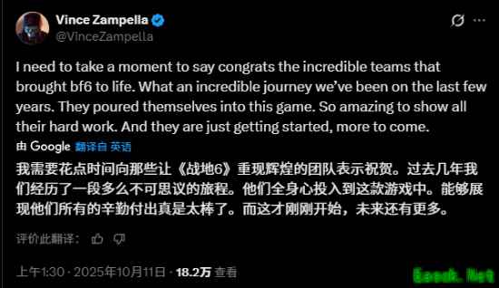 《战地6》负责人庆祝发售:只是开始 更多惊喜在路上!