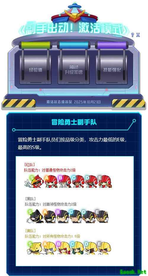 《冒险岛》V220版本欢乐驾到!夜晚的马戏团之地球防御本部! 经典端游《冒险岛》每年10月的保留节目——夜晚的马戏团又双叒来啦!这次休彼得蔓大手一挥,赞助地球防御本部一起举办庆典活动~不仅内容有趣,奖励也极其丰厚!还有万圣节专属的次元鬼屋任务和我的小屋(万圣节版)等你来参加哦~ 图1 夜晚的地球防御本部庆典,冒险岛金刚S横空出世?! 10月15日起至11月25日,玩家可参与[夜晚的马戏团]夜晚的地球防御本部庆典任务,活动期间,休彼德蔓组建了冒险勇士副手队,不同颜色的队伍能力各异,消灭等级范围内怪物收集冒险勇士点数,支援冒险勇士的队员们吧。 图2 每周要激活出动模式、设置获得奖励的模式(三选一),选择后该周无法更改。奖励每日最多领取1次,每周最多领取3次。 图3 除主要活动之外,玩家们还将化身庆典设计师,设计师拥有装备庆典的力量,通过使用幻想币来强化冒险岛金刚S或装饰各种庆典饰品。 图4 庆典设计师分为5个等级,达到<大师设计师>后,获得的设计师经验值全部兑换成幻想币,可通过休彼德拉获得。 图5 冒险岛金刚S有2种专利许可技能,冒险岛金刚S:炼狱轰击技能与冒险岛金刚S:制空强击技能。构成冒险岛金刚S的部位共10种,各个部位都会帮助发动冒险岛金刚S的专利许可技能。最先激活头部和面具部位才能使其他部位准备驱动,进入可激活状态。头部部位激活后,胸部、腰部、左手拳和右手拳都会变成可激活的准备状态。面具部位激活后,左侧肩膀、右侧肩膀、左侧手臂、右侧手臂都会变成可激活的准备状态。各部位不同强化阶段的可分为0阶段、1阶段、3阶段、5阶段。 图6 使用幻想币强化冒险岛金刚S,或装饰各种庆典饰品后,可以获得增益。 图7 部分增益奖励需要在地球防御本部庆典现场找NPC淘气白外星人领取。 图8 庆典小游戏一——升起的明星阿琳举办粉丝见面会 即日起至11月25日,参加[夜晚的马戏团]升起的明星阿琳举办粉丝见面会!活动,获得 阿琳的粉丝见面会普通席入场券,双击使用进入到粉丝见面演唱会现场,遇到粉丝俱乐部外星本部的应援团长白外星人,获得专门为阿琳研究WOTA艺,只要跟着做就能获得奖励! 图9 在阿琳的粉丝见面会场地普通席与VIP席都可以购买纪念道具。 图10 庆典小游戏二——虚拟训练系统启动! 即日起至11月25日,参加[夜晚的马戏团]虚拟训练系统启动!活动,休彼德蔓为了应对敌人入侵地球防御本部的庆典现场,进行虚拟系统训练,进入系统后,会随机指引击败目标。个人能够持有的激光弹夹和子弹有限,成功发射时发放分数,如向目标之外的对象发射,则回收分数。没有弹药或剩余时间时,将自动退出。获得的分数可以兑换成设计师经验值。 图11 累积分数达到10000分时,可以获得虚拟训练大师椅子交换券。 图12 庆典小游戏三——监视要员阿亮 10月29日起至11月25日,参加[夜晚的马戏团]监视要员阿亮活动,成为庆典现场的监视要员,抓出可疑人员,可疑人员进入瞄准器后保持2秒不离开范围,就会出现数值条,数值条填满的瞬间,特殊开发的驱除器启动,发射电波立即清除可疑人员。获得的分数可以兑换成设计师经验值。 图13 累积分数达到20000分时,可以获得锁定目标!椅子交换券。 图14 庆典小游戏四——冒险岛金刚S超频 10月29日起至11月25日,参加[夜晚的马戏团]冒险岛金刚S超频活动,消灭等级范围内怪物,收集补充能量的浓缩能量和急速冷却上涌热气的液氮,可以对冒险岛金刚S进行超频作业,升级冒险岛金刚S的炼狱轰击与制空强击技能的额外属性。 图15 庆典小游戏五——守护庆典 10月29日起至11月25日,参加[夜晚的马戏团]阿哲的紧急呼叫活动,维护庆典现场的和平,消灭卡雄战甲吹泡泡鱼模式怪物,限时期间内通过对怪物造成的伤害获取分数,根据分数发放对应的经验值。*超过第10阶段,进入挑战极限的领域,消灭怪物后获得突破极限分数。 图16 突破极限分数达到1000分,还能获得我们是冒险勇士!椅子交换券。 图17 庆典小游戏六——练习胜利姿势 11月12日起至11月25日,参加[夜晚的马戏团]练习胜利姿势活动,阿海构思了让人记住冒险勇士存在的帅气姿势,跟着录像练习,点击对应的方向键完成胜利姿势,获得的分数可以兑换成设计师经验值。 图18 累积分数达到20000分,还能获得有些奇怪的冒险勇士椅子交换券。 图19 庆典小游戏七——介绍一下机器人朋友 11月12日起至11月25日,参加[夜晚的马戏团]怪物外星人章鱼枪和机器人朋友活动,帮助怪物外星章鱼枪和机器人朋友顺利定居地球防御本部。作为回报,每天可以从机器人朋友处获得一个随机礼物。快来试试今日运势如何吧! 图20 装备附加属性传授: 图21 马戏团特殊福利: 即日起至11月25日,随着活动的展开,每当设计师等级上升时,依次开放1个福利按钮,等级升级为大师级,可预约激活冒险岛金刚S项目纪念模式!在马戏团庆典结束2周内可以继续使用冒险岛金刚S技能。 图22 完成隐藏任务可以获得:地球防御本部庆典照片卡。 图23 超越成长秘药: 图24 密特拉的极限能量石500万100%箱: 图25 密特拉的星之力强化箱: 图26 装备传授: 图27 移动骑宠技能: 图28 寻找异常!解决鬼屋的次元扭曲吧! 10月22日起至11月4日,玩家可参加次元鬼屋活动,受到次元门开启事件影响,鬼屋的次元扭曲了,寻找异常现象,解决鬼屋的次元扭曲,累积每日稳定化次数,获取各种奖励吧! 图29 顺利逃出
