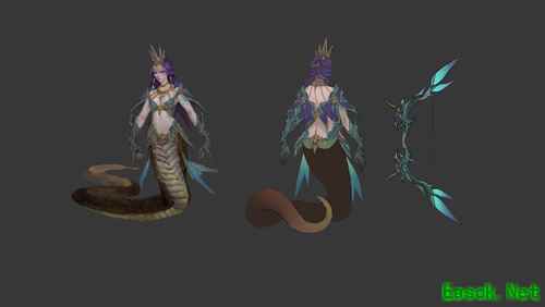蛇人 蛇人的祖先是人和蛇的后代,人身蛇尾。和他们的祖先蛇类不同,拥有智慧和文明的蛇人性情比较温和,擅长弓箭但不好与人争斗,以打猎为生。他们的信仰不同于其他的任何种族,蛇人只相信月亮神的力量,在距离月光之城艾米利尔不远的希望谷,蛇人们建造了祭祀用的月神泉,用来祭奠唯一的至高神——月神艾尔芙洛(实际上就是三尼诺之一的艾尔芙,只不过在蛇人的传说中,艾尔芙洛是一位人身蛇尾的女神,可以在水下和陆上生活)。