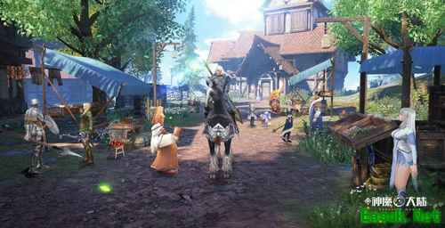雷辛格城堡一景 采用这种方式的也是有好有坏,得益的地方是游戏世界架构更为合理,避免了世界观是一种“大家有,我也一样要有的佐料“而设计的步骤,每一种游戏元素的出现和消亡都是算法在运作,比如某些种族的兴旺与消亡,大区域性的环境变迁,区域性的植被、建筑、服饰、族群势力的差异化设计,以及游戏中隐藏的各种玩法、线索等能找到以前的影子。