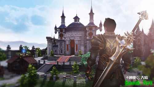 图6:充满地中海风情的极地边境 在壁画上。大约公元482年,东罗马帝国皇帝查士丁尼曾把他本人的肖像做成闪闪发光的马赛克拼砖,镶嵌在拉文纳圣维塔莱教堂的墙壁;公元785年,西班牙统治者阿布达尔建造一座大清真寺,将伊斯兰装饰风格与拱门结合在一起…… 就通常的历史进程而言,给艺术提供赞助的多是统治者,而这种“从上至下”的设计是最能直观反馈出大型势力的。《新神魔大陆》里设计的大型NPC势力驻地建筑也通常会采用此种“传承式”的反馈,但会根据游戏“编年体大事件”框架适度调整,以便适应游戏性,增添时间上的沧桑感。