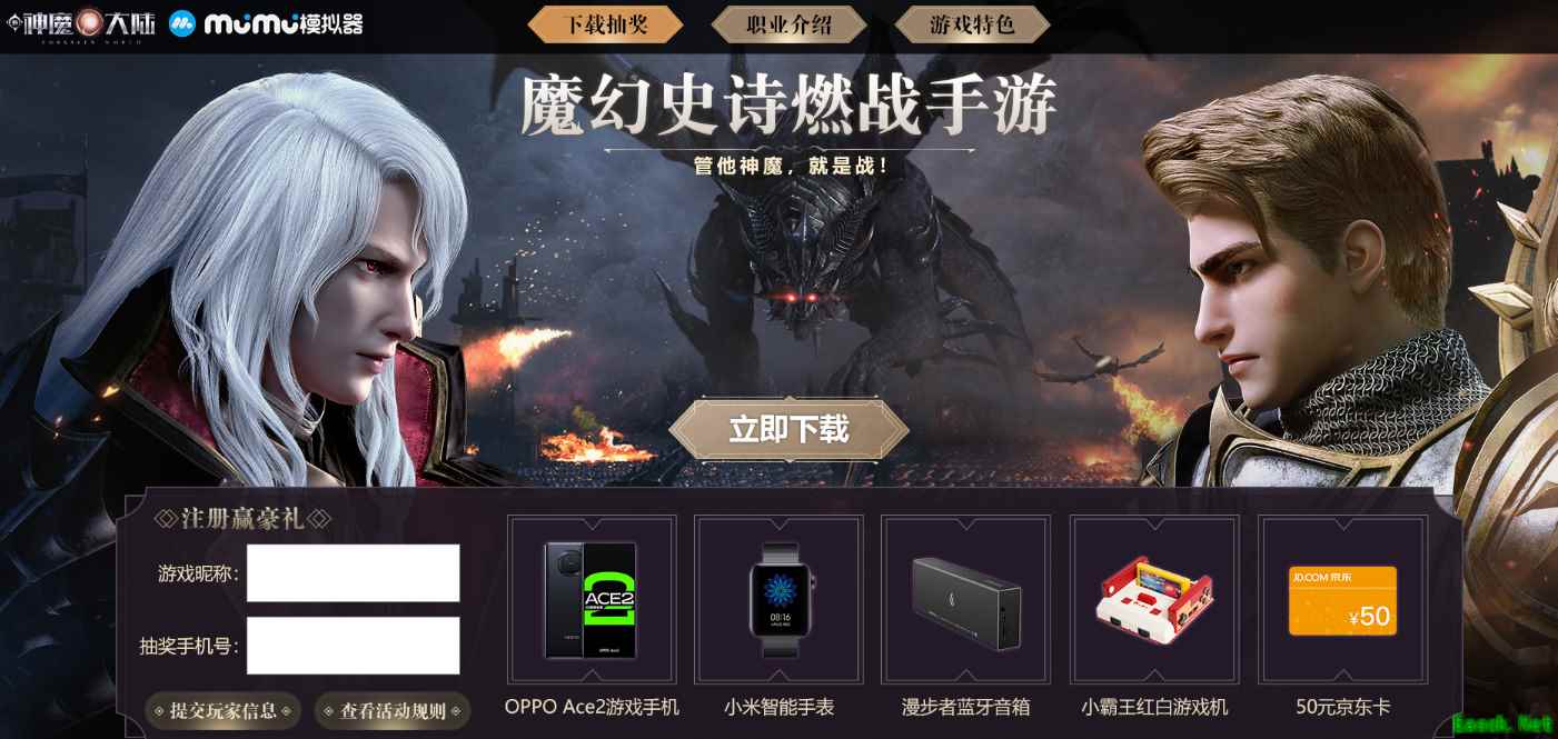 用MuMu下载注册《新神魔大陆》 抽OPPO Ace2游戏手机 使用网易MuMu模拟器下载《新神魔大陆》,登录游戏创建角色即可参与抽奖,奖品包括OPPO Ace2游戏手机、小米智能手表和漫步者蓝牙音箱这样的数码潮品,还有情怀满满的小霸王红白游戏机,以及超实用的京东卡。参与抽奖的方式非常简单,只需要在MuMu应用中心下载《新神魔大陆》,在活动页提交游戏名和抽奖手机号即可,活动时间为7月2日至7月8日,想要参与的玩家一定不要错过。