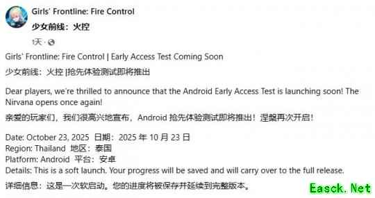 散爆网络旗下的黑卡蒂工作室(Hecate Team)于近日正式宣布,旗下开发中的新作《少女前线:火力控制》将于2025年10月23日开启安卓平台的抢先体验测试。本次测试地区仅限于泰国。