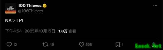 此前我们曾报道过,在今天进行的《英雄联盟》小组赛瑞士轮第一轮的比赛中,来自LPL的一号种子BLG战队不敌来自LTA赛区的100T战队,落入0-1组。 赛后,100T战队官方推特发文嘲讽:“NA>LPL”,引发网友们的热烈讨论。 本文由制作发布,未经允许禁止转载。 更多相关资讯请关注:英雄联盟专区 |