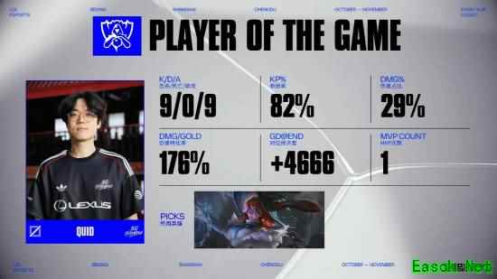 在今天进行的《英雄联盟》小组赛瑞士轮第一轮的比赛中,来自LPL的一号种子BLG战队不敌来自LTA赛区的100T战队,落入0-1组。 【本局比赛战报】 6分钟,下河道Quid阿萝拉先手击败伊莉丝拿下一血,100T完成一换二; 22分钟,100T抢下小龙,FBI吉格斯先手击败嘉文四世,Quid阿萝拉斩下三杀,100T完成二换五; 25分钟,野区团战,Quid阿萝拉击败伊莉丝拿下双杀,100T完成零换三,顺势拿下大龙; 30分钟,Quid阿萝拉野区先手击败凯特琳,100T完成一换五,顺势推平基地拿下比赛。 【本局MVP】100T战队中路选手Quid 本文由制作发布,未经允许禁止转载。 更多相关资讯请关注:英雄联盟专区 |