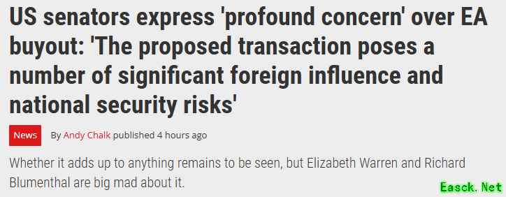 EA收购案引美国议员担忧:可能带来"外来影响和安全隐患"