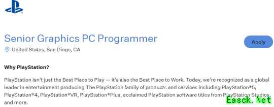 索尼圣迭戈工作室招募PC端图像师 或开发3APC游戏