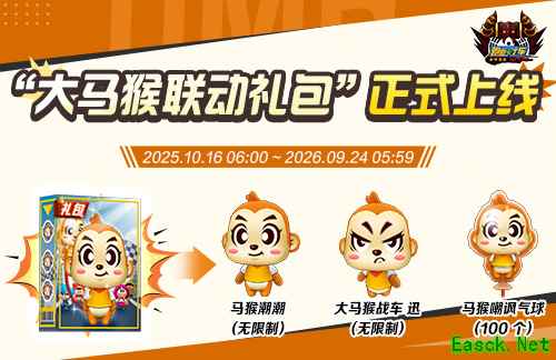 同时,游戏内<嫦娥的幸运宝石1+1>同步开启!商店内 “大马猴联动礼包”也正式上架,兑换可得“马猴潮潮(无限制)”、“大马猴战车 迅(无限制)”、“马猴嘲讽气球(100个)”,切勿错过~