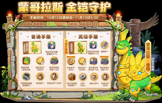 《石器时代:觉醒》两周年版本10月15日正式上线!想必大家都迫不及待要登录游戏了,为大家整理了全平台所有福利活动,别错过丰厚奖励哟。 ![]() 登录送彩 彩运满满 活动时间:10月15日更新后~11月30日 5:00领取条件:活动期间内累计登录25天,月卡状态下即可领取【马年兽限定彩MM*1】。 ![]() 尼斯嘉年华 活动时间:10月15日更新后~11月1日 5:00 领取条件:10月赛季期间尼斯大擂台5V5,最高段位≥20星可获得 奖励内容:【二周年庆典帽子*1】【马年重生果实箱*100】【马年皮肤抽奖券*1】 (抽奖券使用后获得绑定金贝*1000或马年兽皮肤自选箱*1,获得的皮肤可交易) ![]() 周年庆典掉落兑换 活动时间:10月15日更新后~11月10日5:00 每日上线挂机捕捉宠物,即可获得庆典金币!挂机抓宠每日限额,记得每天来领;挑战精灵王试炼\元素神殿\逆境迷宫\勇闯天空岛\勇闯珊瑚海,每周通关赢庆典金币;赢得竞技场&尼斯5v5对战胜利拿奖励,段位越高单次获得庆典金币越多! ?? 庆典金币兑换壕礼: ①五选一2D人龙骑证 ②价值5000元的重生果实(1000档位) ③宠物口袋、百宝袋、石币 ![]() 环岛同乐 庆生打卡 活动时间:10月15日更新后~10月27日5:00 每日打卡领奖励:与庆典NPC每日互动可获得蛋糕自选礼盒*1和以下任一随机奖励 随机奖励:中级经验卡、高级经验卡、青鱼子、石币*1k、佛跳墙 、绑贝*100(均为绑定)(打开蛋糕自选礼盒*1可获得与“青鱼子/果酒盛宴/佛跳墙”任一料理同效果的蛋糕) 10月26日当日与村长家门口蛋糕互动可获得庆生贺卡*1;点击使用后得到庆生红包*1;红包有概率获得:绑贝*500,000、绑贝*88,888、绑贝*68,888,绑贝*50,000 ![]() 金铠手册45级领免费皮肤 庆典手册加速 手册开启时间:10月15日更新后~11月10日5:00 ● 周年手册新增庆典金币&雷龙系重生果实 ● 普通手册达到45级即可领取蒙哥拉斯·金铠皮肤 ● 高级手册达到45级即可领取蒙哥拉斯·金铠皮肤特效 ![]() 10月15日更新后~11月3日 5:00期间,通关副本目标任务,即可领取手册经验,助力加速升级更畅快! ![]() 周年节节高 活动时间:10月20日 5:00~10月27日 5:00 挂机获得石币数量提升100%;周活跃度奖励限时加码:石币&恐龙化石翻倍;最后一档限时增加庆典金币*100(价值100元);团队任务两档(90/120档位)奖励翻倍 ![]() 周年庆典 战意不休 活动时间:10月15日更新后~11月3日 5:00 竞技场失败不扣分;尼斯55失败不扣分;(不扣分效果每周单角色限3场) ![]() 沉船冒险 海底寻宝 活动时间:10月15日更新后-10月30日 5:00 通关沉船大冒险目标层级,即可领取对应奖励。 ![]() 快来参与这场周年狂欢盛宴吧! |