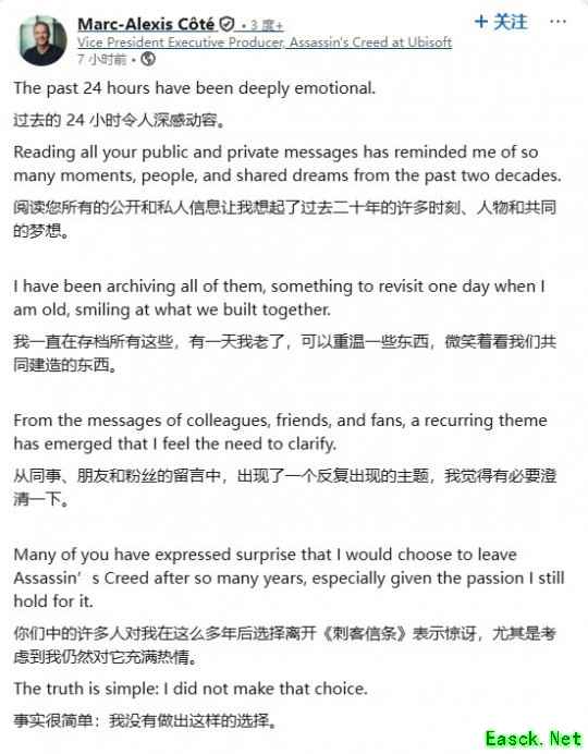 "不是自己想走!"《刺客信条》前负责人称是公司逼退