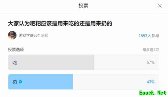 制作人@游戏学徒Jeff发文回应热门新作《逃离鸭科夫》中粑粑相关的问题。 据悉,游戏上线后,很多玩家质问官方“为什么游戏里的粑粑不能吃”。Jeff回应称:“游戏内物品的食物属性和投掷物属性是冲突的,所以粑粑能扔就不能吃。但是鉴于很多玩家希望粑粑能吃,所以我再次征求一下大家的意见,如果只能选一个的话,大家认为粑粑应该是用来吃的还是用来扔的?” 截止发稿,Jeff发起的投票已有1553人参与,其中57%认为应该可以吃,43%投给扔。 《逃离鸭科夫》是一款鸭子题材PVE俯视角撤离射击游戏。玩家要在鸭科夫的世界里搜寻物资,建造藏身处,升级装备,从一无所有到做大做强;面对虎视眈眈的敌鸭,想方设法生存下去——或者逃离。 《逃离鸭科夫》国区定价58元,首发两周 12% 折扣,折后51.04元。 Steam地址>> 游戏视频: 本文由制作发布,未经允许禁止转载。 更多相关资讯请关注:逃离鸭科夫专区 |