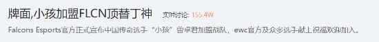 曾卓君加盟Falcons登贴吧热搜!玩家纷纷送祝福!