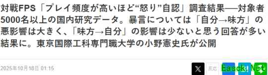 最新电竞FPS游戏玩家意识调查 自己愤怒影响远大于队友愤怒