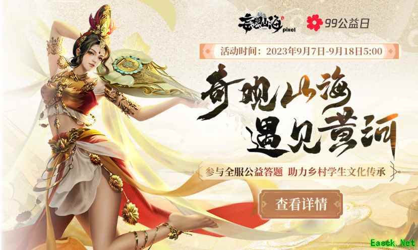 天气渐渐凉爽,正是出游的好时候,旅者们最近有没有外出享受这份难得的秋意呢?(羡慕的眼神)不过,一个人出游虽然闲适,但却少了点热闹,出去玩自然还是人多才更有趣嘛!而今天为大家带来的《妄想山海》新活动就与多人“出游”相关,当然,福利也是少不了哒~ 99公益日,与乡村学生同游黄河! 在“99公益日”即将到来之际,妄想山海联动腾讯公益发起小红花活动,旅者挑战黄河非遗答题任务即可获得小红花,助力乡村学生获得黄河非遗文化科普、传承机会! 在此次活动期间,只要全服累计获得50万朵小红花,就能助力百名乡村学生参观游览“2023黄河非遗大展”等活动啦!让我们与乡村的学生一起感受这条孕育了华夏儿女和中华文化的母亲河的迷人魅力吧! 另外,悄悄告诉旅者,在公益答题活动之外,妄想山海在后续与“2023黄河非遗大展”的合作中,还会进一步推出更深入的黄河非遗数字化体验,大家可以期待一下!