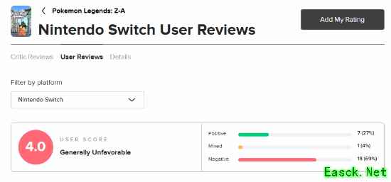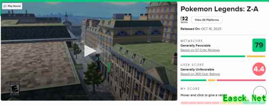 《宝可梦传说:Z-A》M站玩家评分4.4分:画面太糟 玩法无聊!