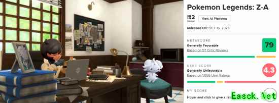 《宝可梦传说:Z-A》M站玩家评分降至4.3!外媒开始盼续作