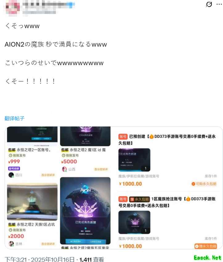 《永恒之塔2》之前在10月16日开启了ID与服务器抢注活动,作为经典MMO《永恒之塔》的正统续作,这次《永恒之塔2》的抢注活动可以说是人气颇高,大量玩家涌入游戏争抢热门ID,以至于活动开始的几分钟内,所有服务器的抢注名额就都被占满关闭了。之后官方又陆续新增了几轮抢注名额,但很快也都被抢空。 要说为什么这次《永恒之塔2》抢注活动如此火热,除了游戏本身热度高之外,就是注册门槛低与工作室了。 本次公测首批将开放韩国与中国台湾的服务器,虽然韩服注册需要有韩国手机号以及韩国IP,但中国台湾服务器人人都可以注册,并且据外网一些玩家称,官方甚至欢迎他们前往台服游玩,因此许多没有本地服务器的日本以及欧美玩家,为了第一时间体验到游戏,都纷纷选择加入台服。 既然即将出现一款大火MMO,那么中国的各大工作室自然是要来赚一笔,一些工作室大规模抢注ID,在闲鱼等平台售卖。这事传到了海外,也让普遍反感工作室的海外玩家们感到不满,纷纷发起吐槽。 不过根据解释,这次的抢注活动并没有放出这些服务器的全部名额,等到游戏正式公测时,仍然有剩余的名额可以供玩家注册,没有和朋友抢到同一个服务器的玩家们可以到时候再抢一波。 |