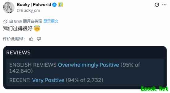 尽管人气颇高,但这款“缝”了宠物收集与生存玩法的游戏《幻兽帕鲁》,在其他开发商和玩家群体中也不乏争议——不过据据gamesradar报道,开发商Pocketpair的全球社区经理Bucky认为,针对该游戏的批评对其成功“毫无影响”。 近日,社交媒体上有玩家发帖称,微软《幻兽帕鲁》的“负面声音”更多是“刻意博眼球的表现”,而非发自内心的不满。对此,Bucky解释道:“我的生活每时每刻都围绕着《幻兽帕鲁》,我可以向你保证,你只会在推特和Bluesky上看到有人对它大放厥词。这类内容轻松就能获得50万浏览量,这也是为什么吐槽《幻兽帕鲁》总能成为热门话题。情况就是这样,这实际上对游戏和社区毫无影响。” 随后,这位开发者在自己的帖子下补充了一张截图,展示了该游戏在Steam平台上的表现—— 具体包括其整体的“特别好评”,以及近期的“好评如潮”,两类评价均有数万条之多。 本文由制作发布,未经允许禁止转载。 更多相关资讯请关注:幻兽帕鲁专区 |