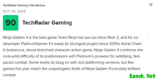 《忍者龙剑传4》M站均分83分:血脉贲张的华丽回归!