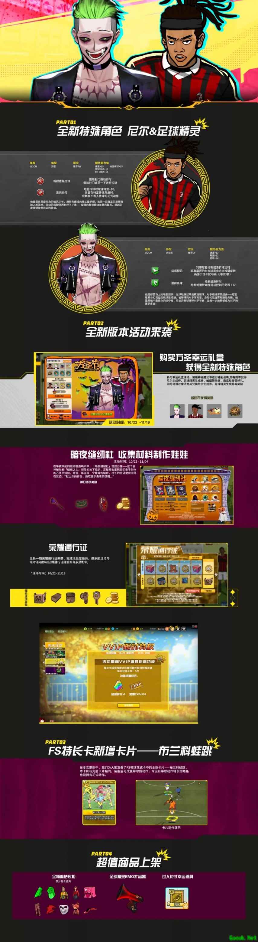 自由足球怀旧服10月22日更新!新花式动作“布兰科蛙跳”上市!新特殊角色足球精灵&尼尔闪亮登场!精彩缤纷的万圣节主题活动等你来参与!