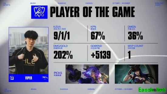 在今天的《英雄联盟》S15全球总决赛瑞士轮阶段中,中国台湾省战队CFO 0:2不敌HLE战队,落入2-2组,HLE战队成为第三支晋级淘汰赛阶段的队伍。 值得一提的是,CFO曾在小组赛第二轮中以强势表现击败卫冕冠军T1,引发广泛关注。 【本局MVP】HLE战队下路选手Viper 【本局比赛战报】 4分钟,Peanut蔚在入侵对方野区时,被JunJia特朗德尔抓到机会击败,CFO拿下一血; 18分钟,Zeus雷克塞在野区抓到吉格斯,Peanut蔚跟上输出将其击败,双方完成二换二 ; 24分钟,CFO利用HongQ瑞兹大招绕后开团,但Zeka塔莉垭反应迅速大招分割战场,Viper凯特琳率先击败雷克顿拿下三杀,HLE完成二换四; 33分钟,Delight阿利斯塔先手开团控住三人,Viper凯特琳闪现向前跟上输出拿下双杀,HLE完成零换四,顺势推平基地拿下胜利。 本文由制作发布,未经允许禁止转载。 更多相关资讯请关注:英雄联盟专区 |