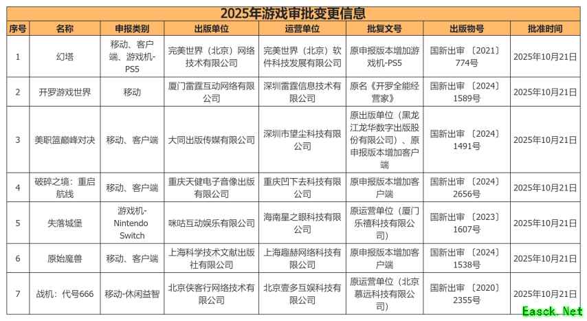 审批变更中,值得关注的有《幻塔》加游戏机-PS5。