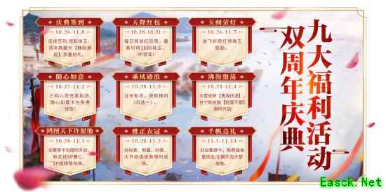 庆典签到,天降红包,萤灯珠玉庆周年;过关斩将名将来,大营皮肤祈愿至,千帆横江,雅正衣冠.....九大福利活动内容,尽如下言: 一、庆典签到 签到迎庆典,珠玉橙卡带回家!