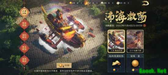 活动时间: 10月28日10:00-11月5日23:59 活动内容: 完成所有关卡挑战,解锁丰厚奖励。 1.活动前六日,每日开启一个大关,玩家可以进行关卡的挑战。 2.系统随机提供几组武将作为预选,主公可从其中选择武将参与作战。 3.选将期间,玩家可以随时终止选将,玩家的选将状态不会消失,在未完成选将时,可以查看敌军的配置,但无法开启关卡挑战。 4.完成选将后方可开始关卡的挑战,前一个小关卡完成后方可开启下一小关卡战斗。战斗胜利后,已经使用过的武将不可再次上阵。 5.每小关首次通过可获得奖励,累积一定成就条件可于主界面解锁奖励。 (注意:武将选取后无法更换,只能随机后重新选择并重新闯关) 活动奖励: 乘风破浪选择卡(使用后可从大乔、袁绍、孙坚、张角四个武将中选择一位获取)、珠玉、虎符等。 六、沸海激荡 沸海激荡庆鸿图双周年!祈愿活动开启,大营皮肤【青海伏波】、甘宁皮肤【轻豪不群】等待获取!