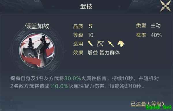 新框架中周瑜属于队伍核心输出,推荐博闻范策+火烈风威。配置后他拥有4个主动输出技能,其中2个技能CD为10秒,具备最高效的巧捷叠加效率,武技无论复制火烧连营还是倾盖如故,都对后续火烈风威有明显伤害增益。 技能配置02——陆逊