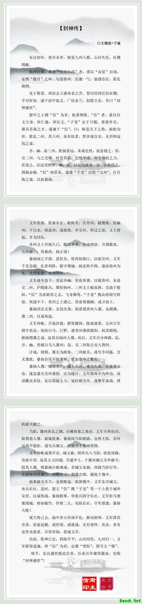 文豪执笔挥洒戎马情,全古文史传技惊四座 “东汉初年,黄巾未举。纵览九州八郡,山河失色,社稷凋敝……”玩家自创的全古文联盟传纪,开篇寥寥数语便勾勒出东汉初满目疮痍的乱世之景。之后,数千极为精简有力的古风文字,为所有观者生动描述联盟兴衰荣辱的发展历史。其文采之盛,让人不禁感叹,泱泱鸿图,藏龙卧虎,玩家不仅善用计谋,攻城略地,更是妙笔生花文采斐然。