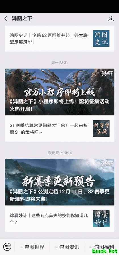《鸿图之下》配将小程序上线啦!史上最全面的配将神器火热来袭,无数大神主公在此探讨交流。模拟配将搭配图鉴百科,实现随时随地在线配将! 英雄造时势,群雄聚鸿图!各位主公每日皆可在小程序中,兑换海量铜币奖励,更有专属称号和不定期的神秘奖品等你来拿!悄悄告诉大家,众位学府配将大师整装待发,共同入驻小程序,为大家在线答疑解惑,推荐强力配将阵容。 下面就一起了解《鸿图之下》配将小程序的使用指南吧! 01【配将神器 方便快捷】 除此之外,各位主公还可前往《鸿图之下》官方公众号,通过公众号菜单栏的【鸿图福利】里的配将小程序按钮,也能进入《鸿图之下》小程序。