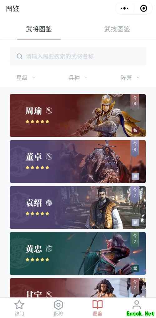 图鉴百科在线查询 专属称号福利倾情放送 04【图鉴百科 尽览鸿图】 【图鉴】区域共分为两大版块,【武将图鉴】版块可查看所有武将的属性和武技。通过属性筛选或名称搜索,就能直接查看指定武将。