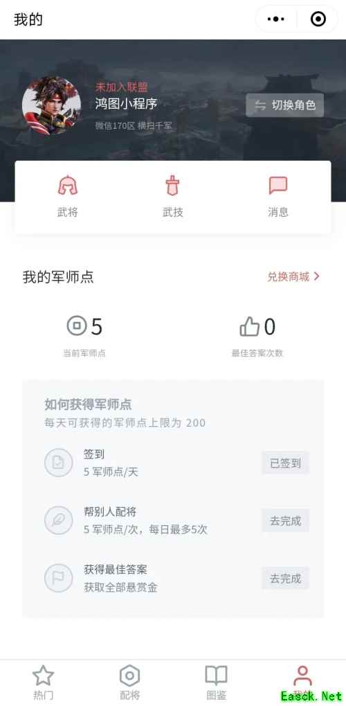 主公们通过签到、帮他人配将,以及被选为最佳答案的方式获得军师点奖励。军师点每日获取上限为200点。主公们前往【兑换商城】,就能使用军师点兑换大量铜币和限定称号。